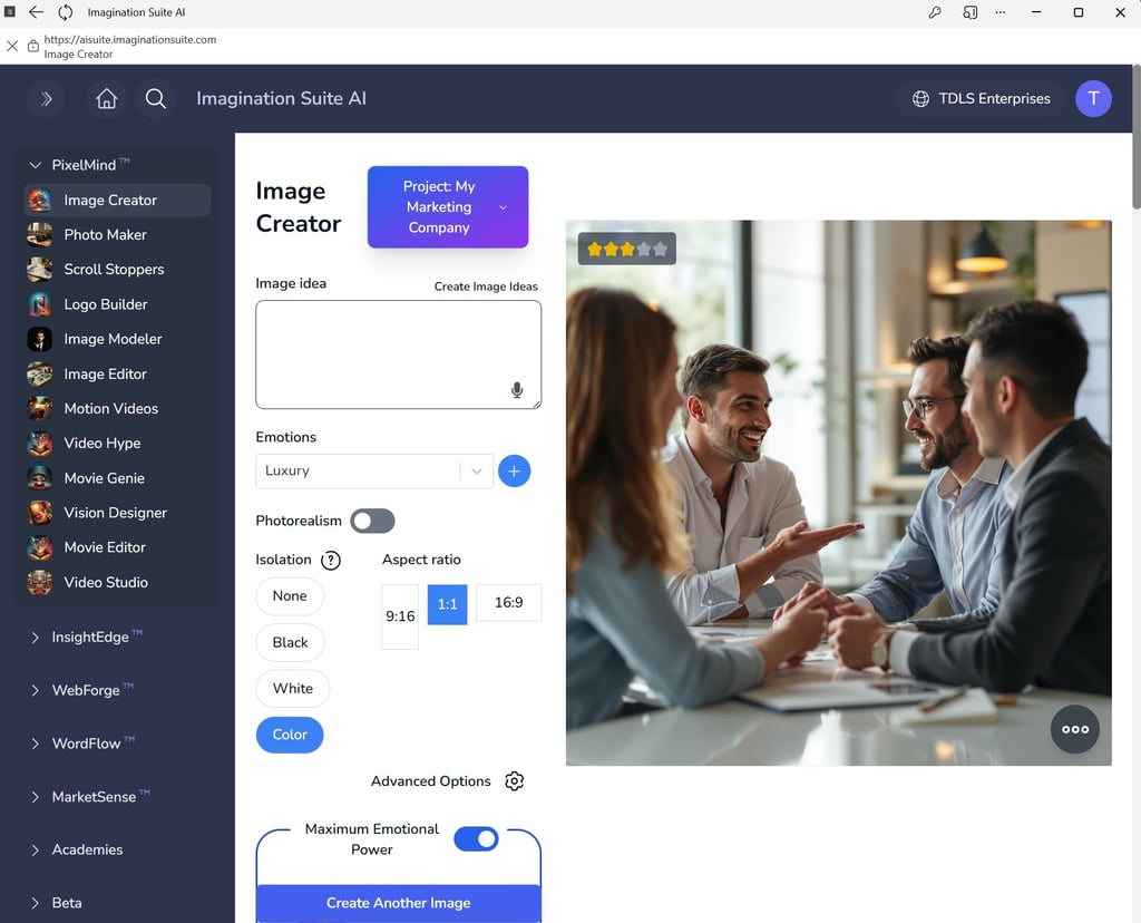 Our PixelMind™️ AI Suite empowers marketers with a seamless suite of 12 AI-driven tools, transforming ideas into polished, audience-engaging content in moments. Harness professional-grade creativity and data-backed insights to elevate your brand’s voice, drive real results, and streamline your marketing workflow. Unleash the creative side of your imagination by bringing your creative vision to life with exotic images and videos instantly without any graphic skills.